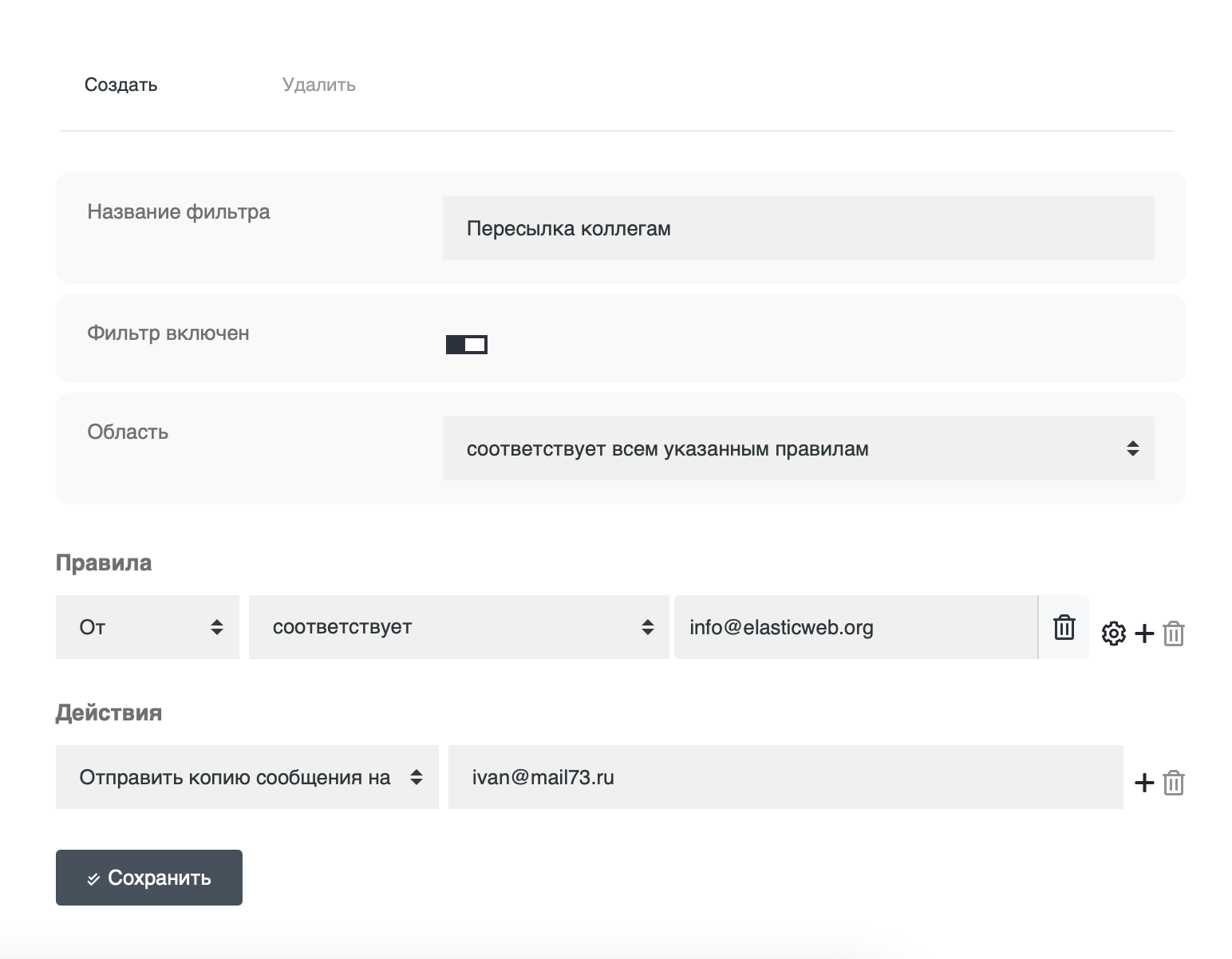 Автоматическая пересылка копий писем с помощью фильтров в Почта73 позволяет настроить гибкие правила обработки входящей почты и организовать эффективное распределение корреспонденции между сотрудниками.